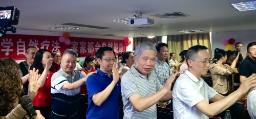 (重庆市自然健康疗法研究会自然拍打专委会刘怀君主任发言并带领大家做自然拍打体验)